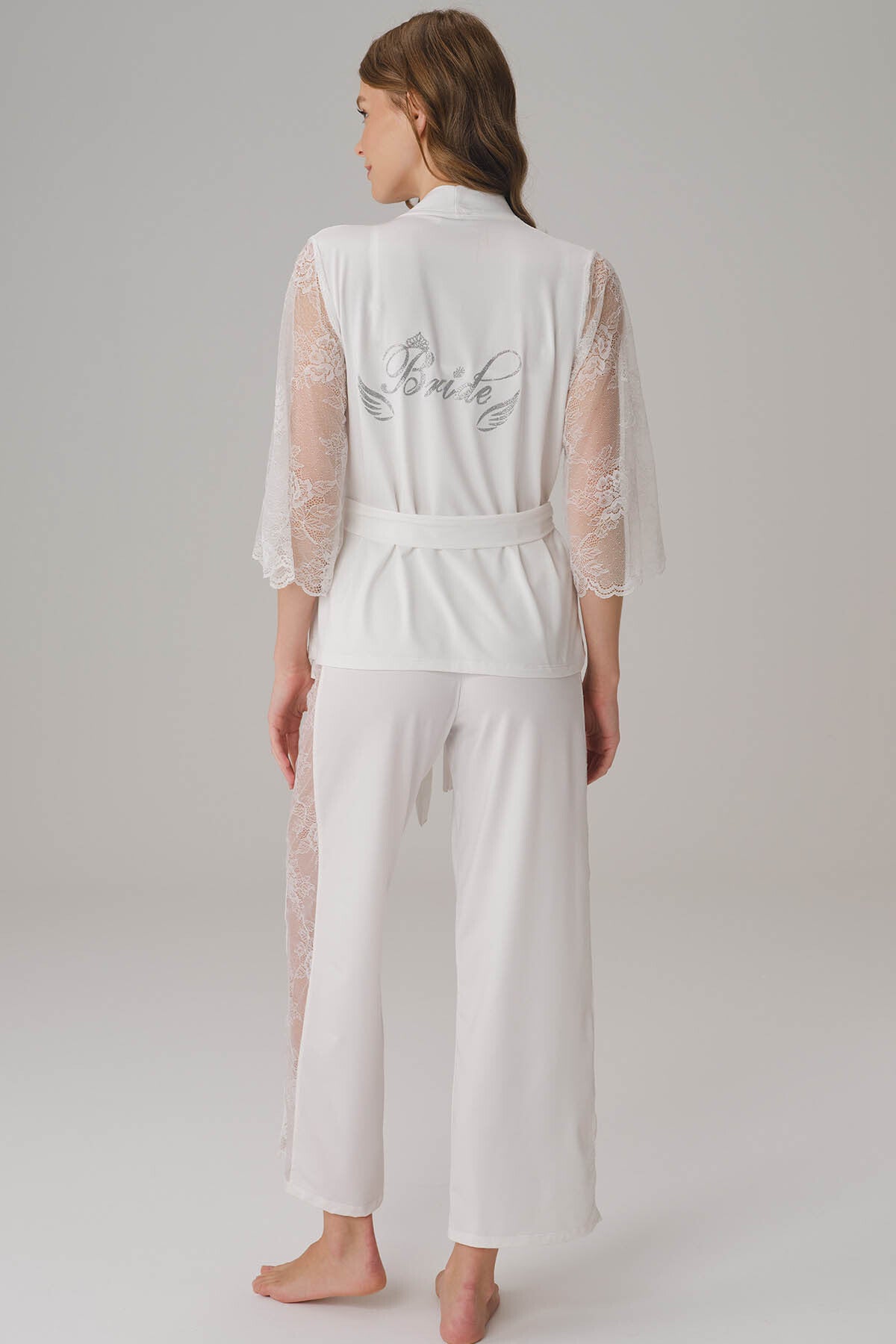 - 3-delige witte bruidspyjamaset