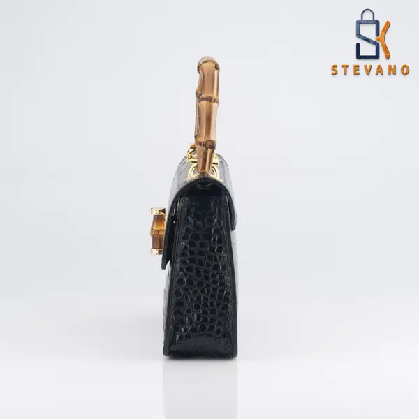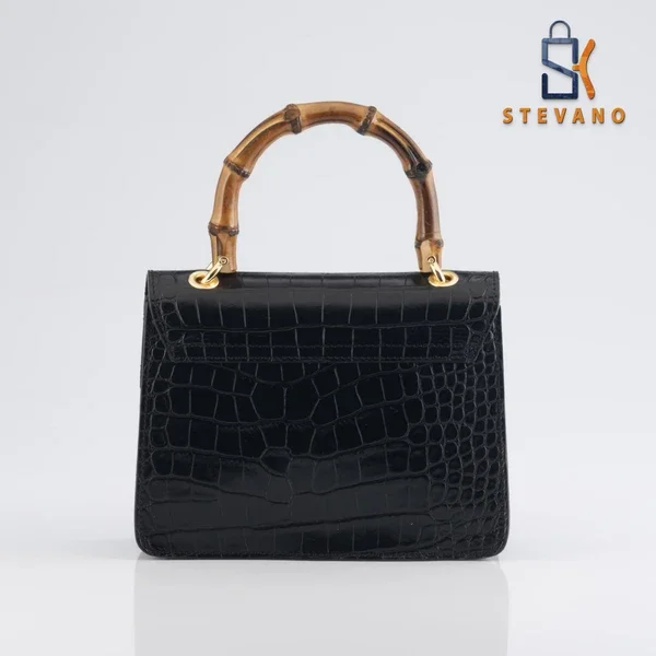 Bamboe Handvat en Verfijnde Draaisluiting: De tas is verrijkt met een bamboe handvat en een verfijnde draaisluiting, wat hem een vleugje tijdloze elegantie geeft.